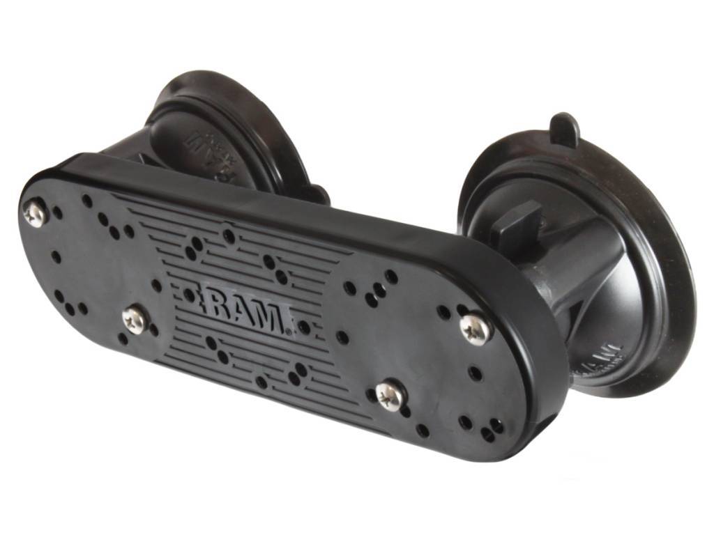 The RAP-333-224-1, double suction cup base, consists of a high strength composite plate attached to two locking suction cup bases. This base has a suction grip which allows you to mount either a RAM-B ball or RAM-C ball system to any non-porous surface including windshields. This base has a suction grip which allows you to mount either a RAM-B ball (1.0 inch ball) or RAM-C ball (1.5 inch ball) mounting system too.