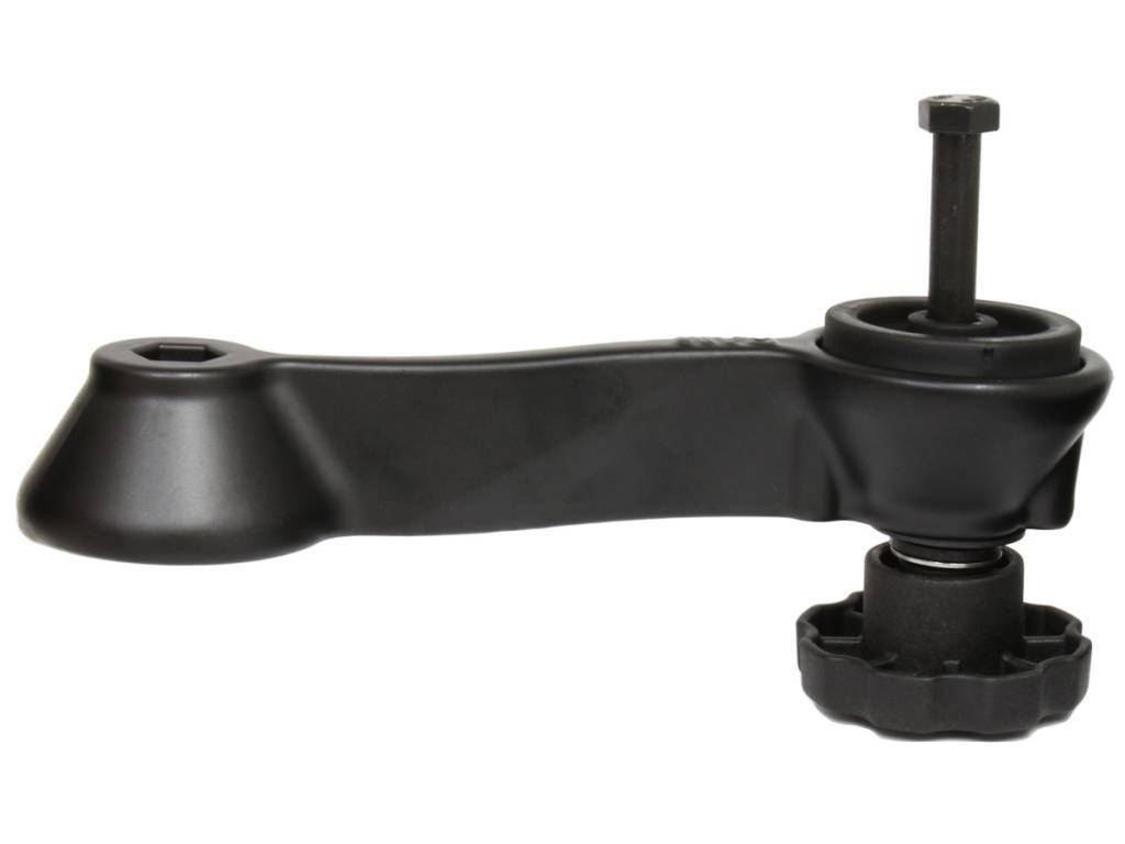 This 6" swing arm extension connects between the top of the RAM Tele-Pole™ . The swing arm connects with a bolt and knob system. With a simple turn of the knob you can pivot the swing arms at this center point and the tighten the knob to lock the arms in place.