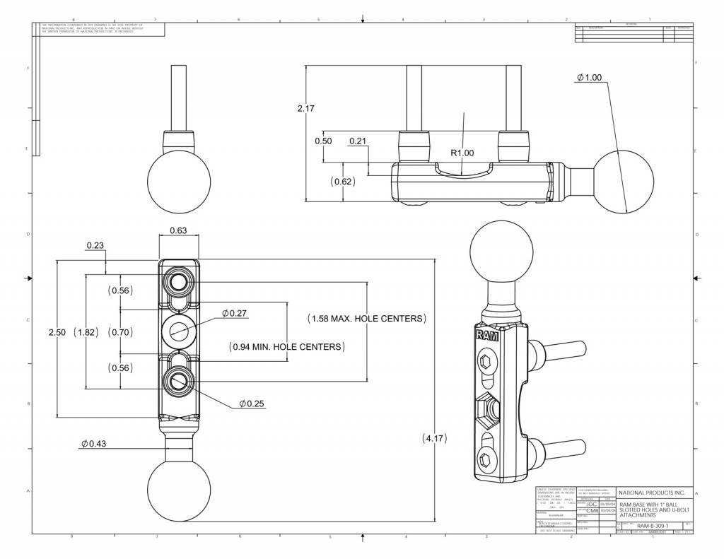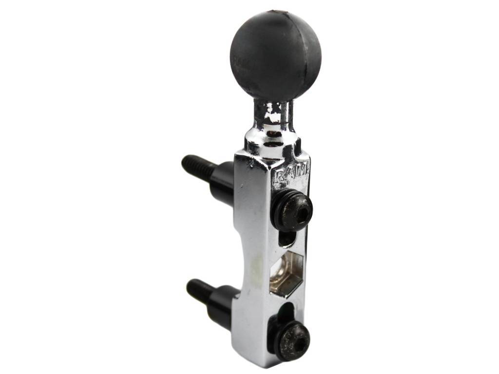 The RAM-B-309-1CHU connects to your handlebar clutch/brake clamp, left or right side, and holds one 1" diameter mounting ball. The chrome base fits the control clamps on your motorcycle with 40mm x 6mm stainless steel hardware, provided in the kit. To see if the RAM-B-309-1CHU base will mount to your motorcycle, check the hole spacing of the base against your clutch/brake reservoir. The holes centers have a minimum width of 0.94" and a maximum of 1.58".