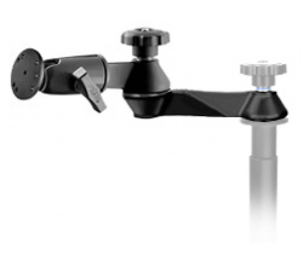 The double swing arm with rotating plate, allows you to twist and tilt the viewing angle of your laptop, tablet, UMPC, monitor, or any other connected electronic device, when mounted on your RAM Vehicle Mount. Taking the highly successful RAM Vehicle Mounts to the next level, this rotating swivel arm gives you even more viewing positions for your mounted electronic device while holding everything firmly in place. The length of the double swing arm is 12".