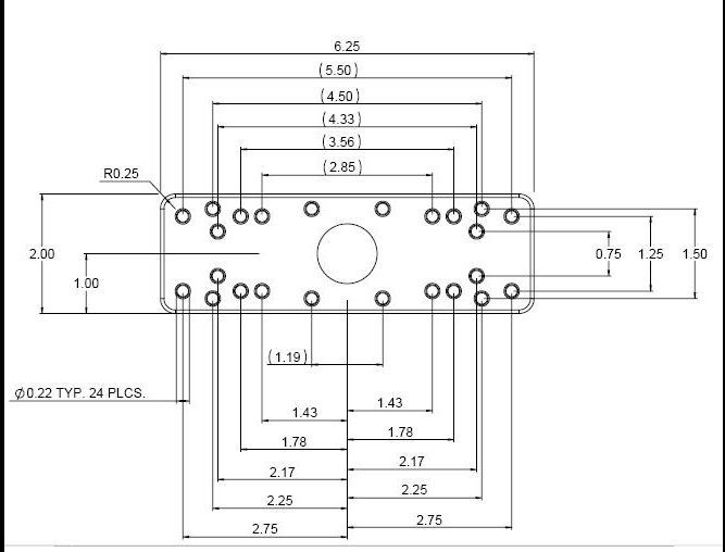 Aluminium montageplaat met b-kogel afmeting 15,9 x 5,1 cm, voorzien van diverse montagegaten.
