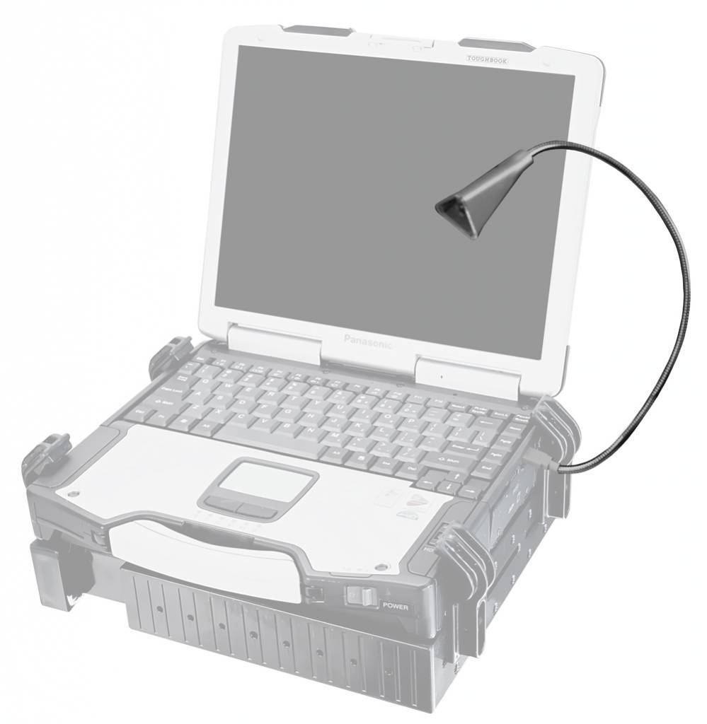 The USB powered, laptop light consists of a flexible 11.5" long arm and a 2" long pointed globe light. This is the perfect solution for the hard to see situations, such as in an airplane or vehicle.