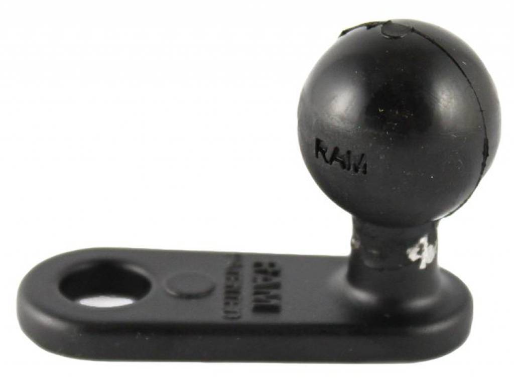 The RAM-B-252U marine grade aluminum base consists of a 1" diameter ball and 2.25" x 0.875" base with 11mm hole. This part is often used on motorcycles, attaching to the mirror frame, the main brand of bike for the RAM-B-252U is BMW. This part fits well on many handlebar pinchbolts with a washer (base is 5mm thick).