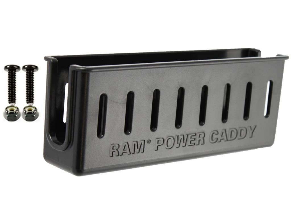 This RAM Power Caddy™ allows for power supply storage to be contained alongside your laptop. Keep your laptop charged and also run additional peripherals like printers, fax machines, etc. all with your own factory supplied power supply or combinations of most aftermarket AC inverters, DC power supplies and or AC/DC power adapters.
