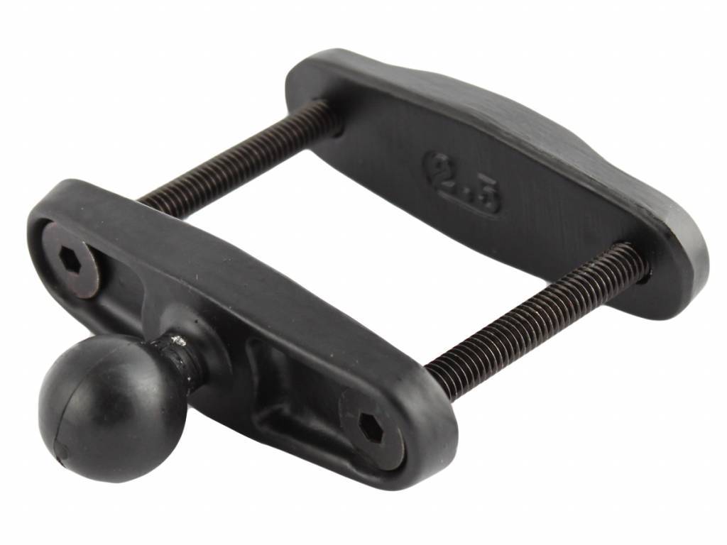 The RAM-B-247U-25 is a marine grade aluminum square rail clamp base with a 1 inch diameter rubber ball that will accommodate a 2.5 inch maximum rail width.