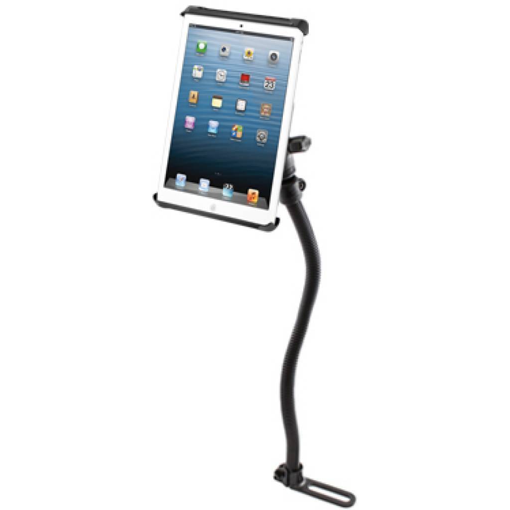 Een stabiele en flexibele oplossing voor het gebruik van tablets onderweg in auto, bestelbus of in een boot. Het 45 cm hoge statief is zeer stabiel, maar kan gemakkelijk in de gewenste richting gebogen worden De tablet zit dankzij de speciaal ontworpen constructie stevig vast in de houder, wel zo veilig. Statief kan eenmalig op lengte afgezaagd worden. Door de rubberenkogel is de houder in elke gewenste positie te draaien, schuin, recht, portrait of landscape. De kogel zorgt bovendien voor demping van de trillingen van het voertuig.