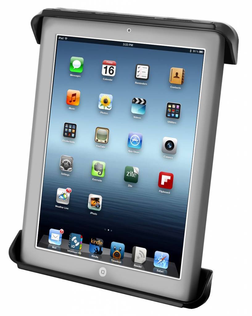 De RAM Tab-Tite cradle heeft een veermechanisme waardoor de tablet snel te verwijderen is uit de cradle. Met uitwisselbare uiteinden is is deze houder maximaal flexibel. Alle knoppen en uitgangen blijven bereikbaar. Ook geschikt voor iPad met bumpercase (zie afmetingen) .