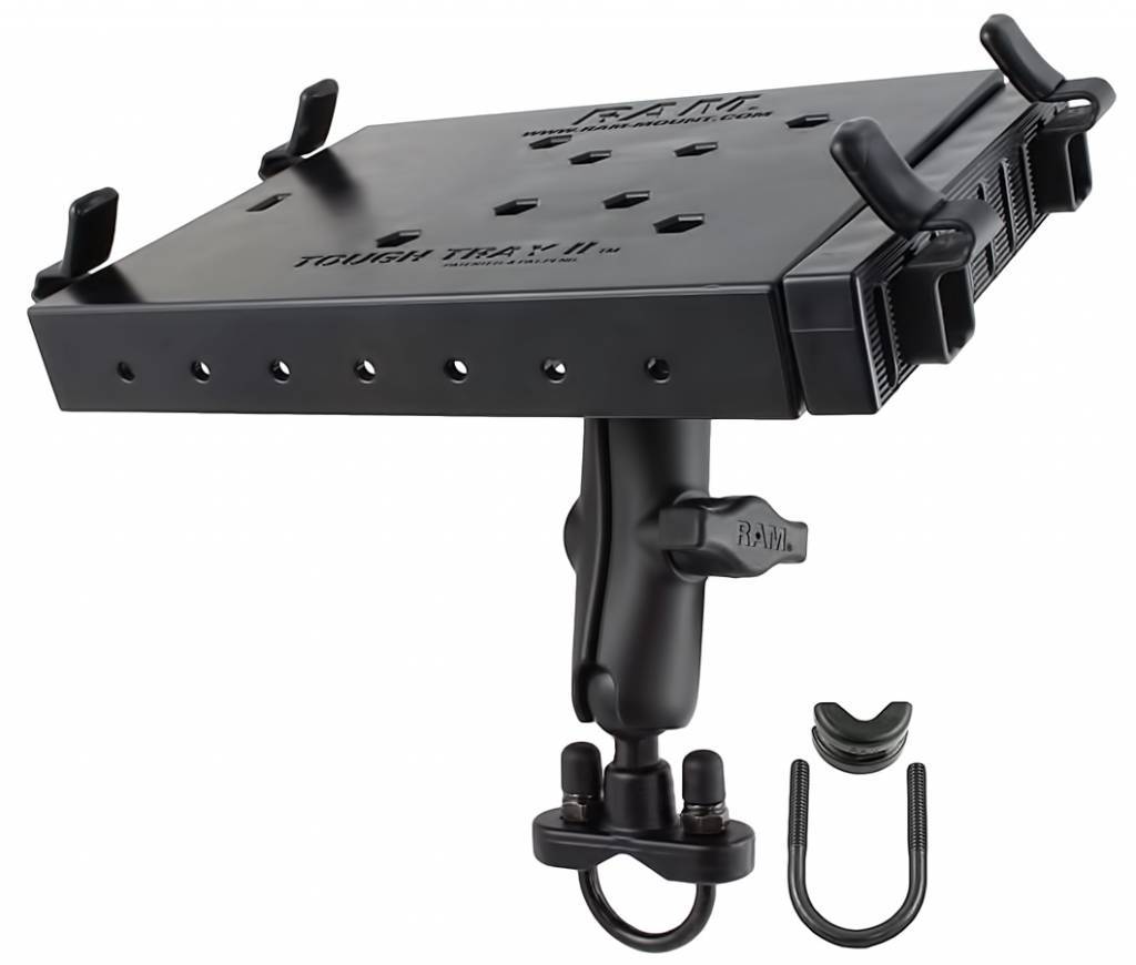 Well thought out and compact designs are common place at RAM and our new RAM Tough Tray II™ is no exception. Spring loaded to create just the right amount of holding force, most tablets, UMPC's, and compact laptops can be made safe and secure while on the go. Simple to install and adjust retaining arms insure a perfect fit without interfering with ports or functions. Also, if a compact laptop is in place, these retaining arms hold firm with the screen up or down. Ideally suited to a multitude of applications, and easily attached to hundreds of mounting systems for cars, boats, planes, and more, compact devices just work better in the universal tablet holder from RAM.