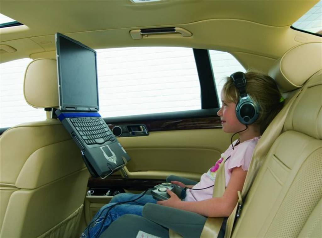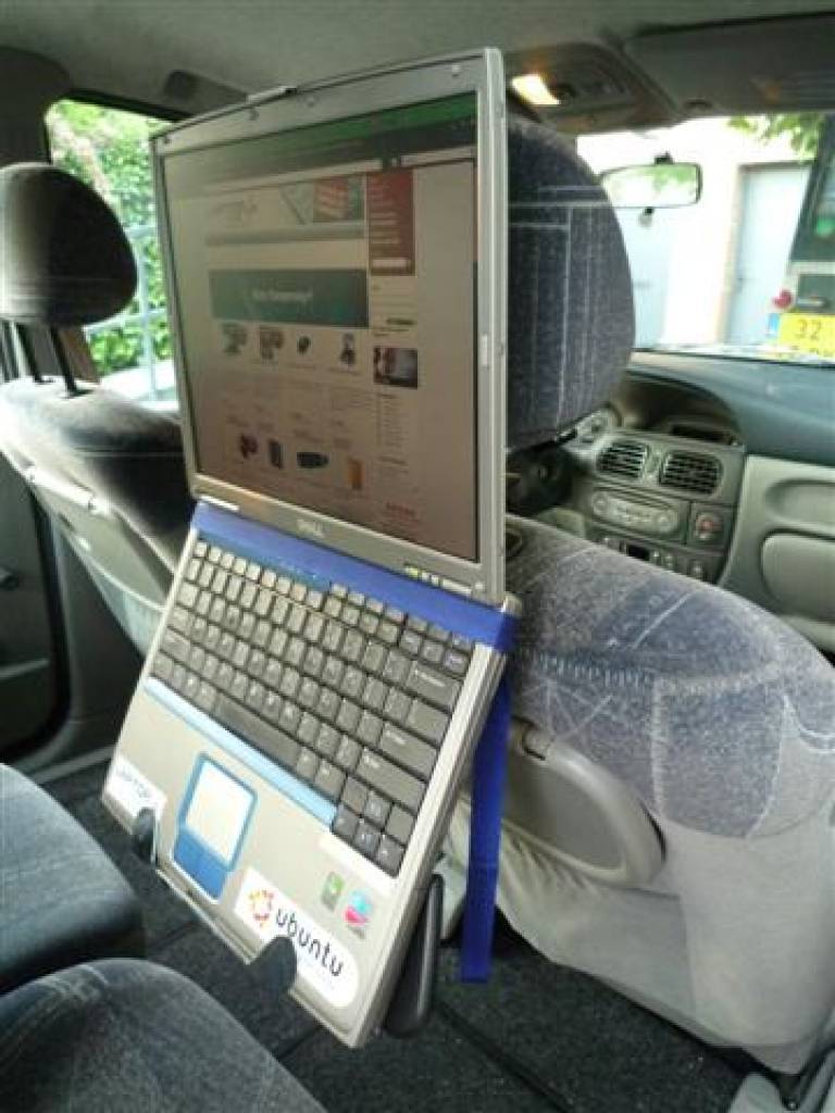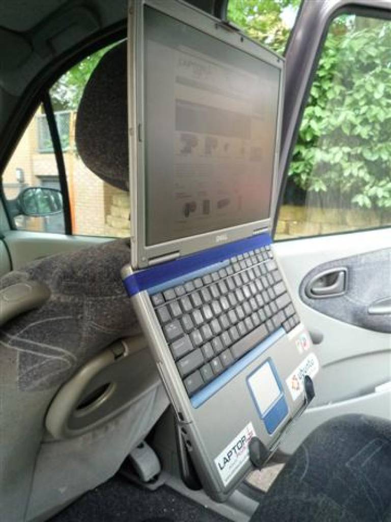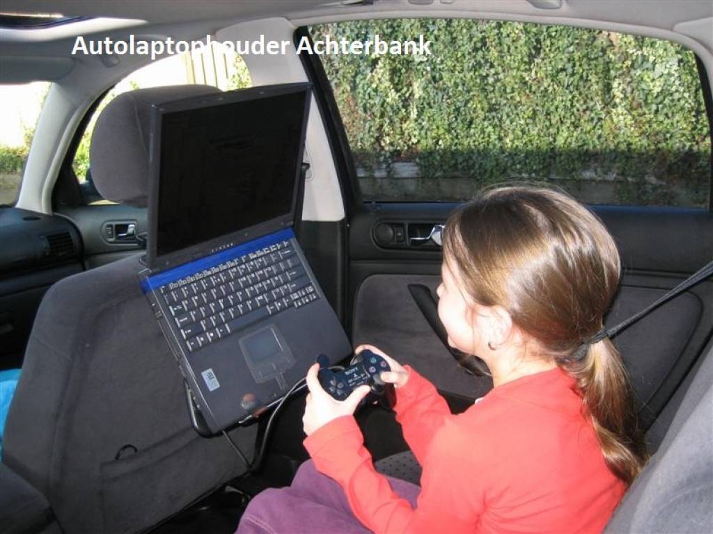 Laptop stevig en veilig vast aan de rugleuning van de autostoel
